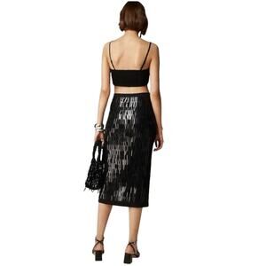 J.Crew Collection Black Sequin Fringe Midi Skirt XS NWT Party Holiday