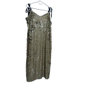 J.Crew Collection Desert Canyon Sequins Midi Dress 12 Gold Tie Shoulders Party