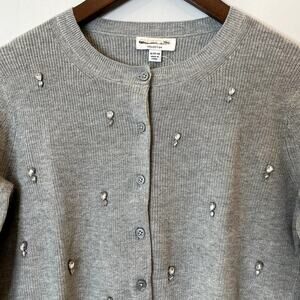 J.Crew Collection Embellished Cardigan Sweater Cotton Holiday CD379 Grey 12 13
