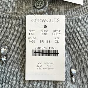 NWT Girls J.Crew Crewcuts Collection Embellished Cardigan Sweater Cotton Holiday CD379 Grey 12-13 XL