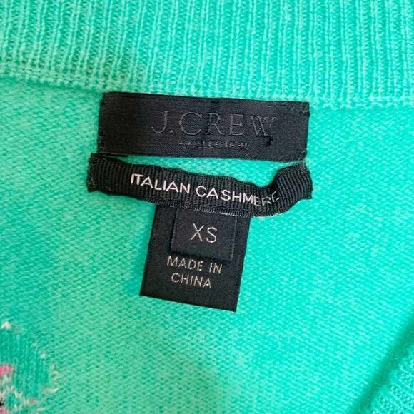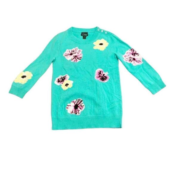 J. Crew Collection Italian Cashmere Green Floral Button Neck Sweater Women’s Size XS