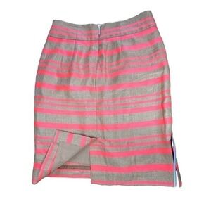 J.Crew Collection LINEN Pencil Skirt Bright Orange/pink Stripe Size 0