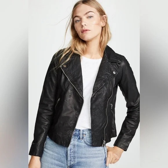 Crafted in buttery-soft leather that's been treated for the perfect had-forever look, this cool leather jacket is the one investment piece you'll still be wearing 10 years from now.