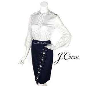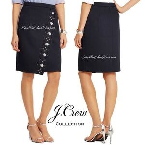 J.Crew Collection NWOT navy embellished asymmetrical bonded twill pencil skirt