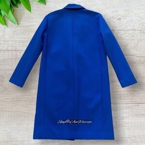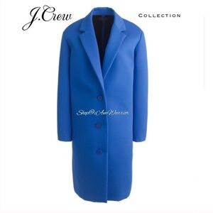 Gorgeous J.Crew Collection Royal/cobalt blue (marine blue) long 3 button mid weight structured topcoat made from neoprene bonded twill thatβs perfect for seasonless wear! NWT, Retailed at $398. Value priced at $20 off. Size 4, oversized fit can easily accommodate a larger range of sizes. Please see photos for measurements.