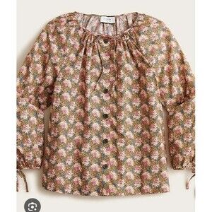 The J.Crew Collection Ratti Floral Top is a stylish and versatile cotton blouse perfect for a variety of occasions. This button-down top features a round neckline, puff sleeves, and a relaxed fit, making it comfortable and easy to wear. The floral pattern adds a touch of femininity, while the multicolor design gives it a playful and trendy look. Made from 100% cotton, this lightweight blouse is suitable for all seasons and can be machine washed for easy care. A great addition to your wardrobe, this blouse combines peasant and preppy styles effortlessly.