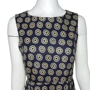 J.Crew Collection Roxy Racer Shift Dress Printed Heavy Linen Blue Beige Size 6