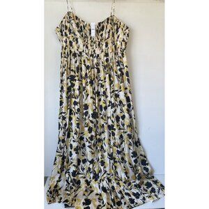 J.Crew Collection Ruched Maxi Dress in Luster Georgette Plus 22W | Yellow Floral | NWT