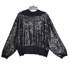 J.Crew Collection Sequin Reversible Zip-Up Turtleneck Sweater Black 3X
