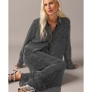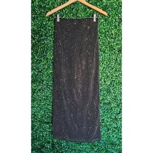 Slinky and shimmery, this floor-length skirt has a slit down the side and rhinestone details all over. Write me with any questions!