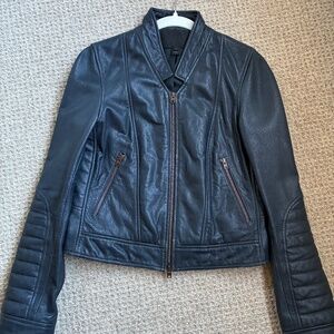 MINT CONDITION - worn very few times! Gorgeous navy leather, standing collar, no signs of wear, size 6. Stored well in non-smoking, pet-free household.
