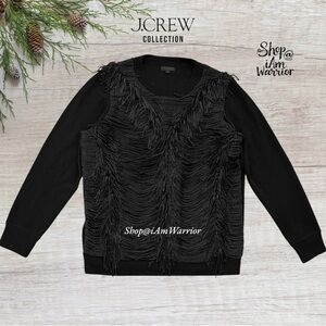 J.Crew Collection black sparkle draped fringe pullover sweater *shop@iamwarrior