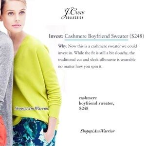 J.Crew Collection NWT Italian cashmere v-neck sweater in a gorgeous shade of neon yellow is perfect for seasonless wear. Ribbed trim at sleeves & waist. Size xs, see photos for measurements. EUC, Retailed at $248. Value priced at $20 off! Looks great with denim, shorts or with my J.Crew Collection pencil skirt (shown here, sold separately).
