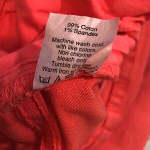 Coral pink lighter than in pictures, 5 pockets, zipper and button closure, belt loops,small stains on hem,colors may vary due to lighting,good used condition, Sz: 27