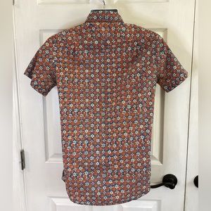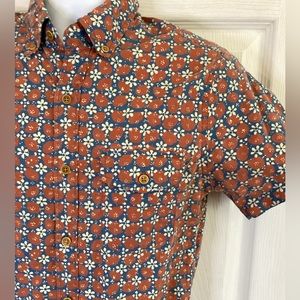 Button down short sleeve cotton shirt with side pocket. Care tag has been snipped. Extra button. Measurements are approximate and were taken laying flat. Pit to pit 19 inches across. Length 26 inches. Smoke free home.