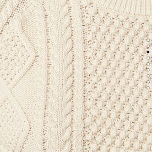 Knit with soft 100 percent cotton, this relaxed crewneck style comes with a classic cable-knit texture, a relaxed fit and a longer hem that hits at the hip.