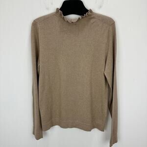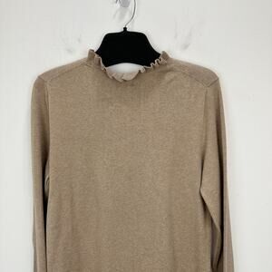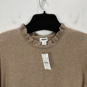 J.Crew Cotton Ruffleneck Sweater Classic Preppy Minimalist Beige Tan Medium NWT.