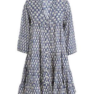 This J.Crew beach dress combines style and sustainability with its floral design and lightweight cotton voile material. Perfect for vacations, this medium-sized dress features a button front and blue straps for an elegant beach look. Retail $89