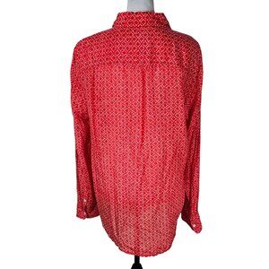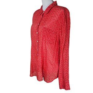 J.Crew shirt, XL red shirt, women's button-up, diamond pattern top, cotton silk blouse, long sleeve shirt, casual top, office wear, machine washable shirt, vibrant red blouse, women's fashion, J.Crew fashion, stylish women's top, office, holiday, valentine's day, going out, flowy, lightweight