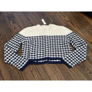 J.Crew Cream & Blue Textured Crochet Lady Jacket Cardigan Sweater BZ467 Size L