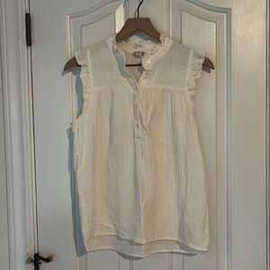 J.Crew | Creamy Gauze Cotton Smocked Ruffleneck Sleeveless Top Small Neutral