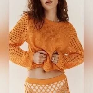 J.Crew Crochet Crewneck Beach Pullover Sweater Bright Orange Size Small