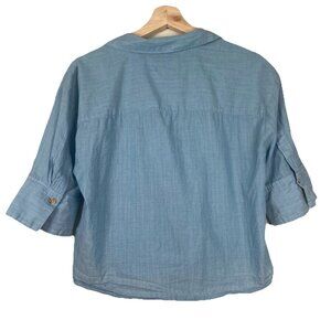 J.Crew Cropped Blue Button-Up Shirt in Washed Voile Size 8 Preppy Lightweight
