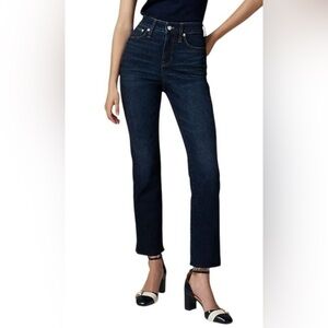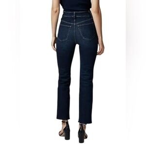 J.Crew jeans, women’s size 31, cropped jeans, curvy kickout fit, J.Crew 2003 Super Stretch, dark wash jeans, raw hem denim, fall 2024 style, high rise jeans, 94% cotton jeans, stretchy jeans, casual denim, modern fit jeans, pre-owned J.Crew, excellent condition, raw hem kickout jeans, trendy cropped jeans, comfortable stretch denim, J.Crew fall fashion, closet staple jeans, flattering fit
