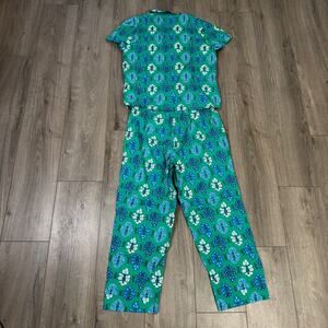 J.Crew Cropped Short-Sleeve Top & Pant Pajama Set Sz M Green Blue Floral Cotton