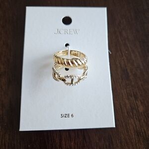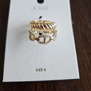 J.Crew Crystal Chain & Textured Band Rings Set, 6, Gold