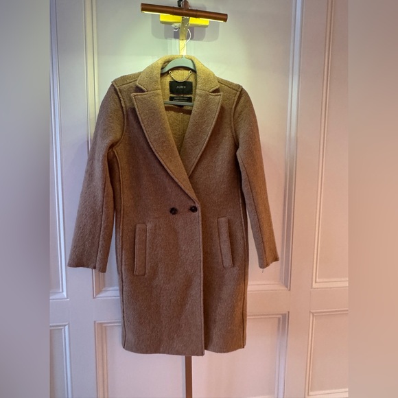 J.Crew Daphne Italian Boiled Wool Topcoat Women’s 2 Tan Camel double breast Coat
