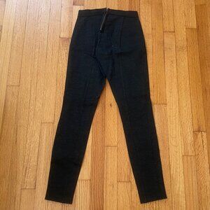J.Crew Grey Stretch Pant with Back Zipper. Dark grey heather pants, black top band. Visible zipper in back. Back seems on legs.