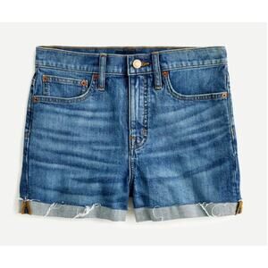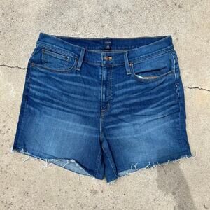 J.Crew Dark Wash Raw Hem Fold Over High Rise Denim Shorts Size 33