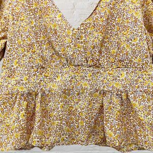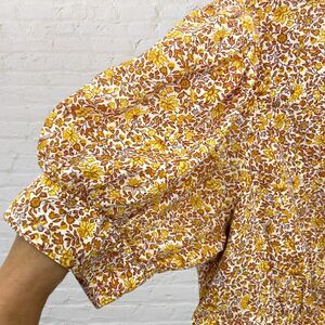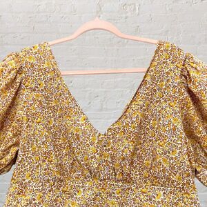 โจ J.Crew Deep V Puff Sleeve Blouse 16 ๐ Yellow Floral Peplum Cotton Blend ๐ธ