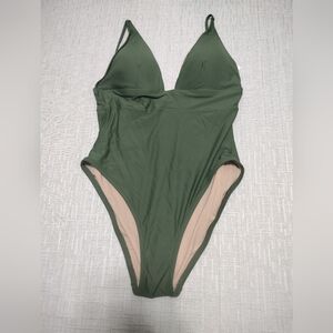 J.Crew Deep V-Neck French One-Piece Swimsuit, Green 10 NWOT
