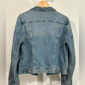 Timeless J.Crew denim jacket in a medium wash — a true closet staple you can wear year-round. This “Re-Imagined” line piece is designed with sustainable practices, giving you that vintage-inspired look with modern responsibility.