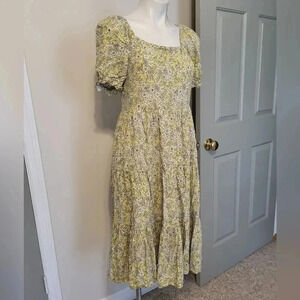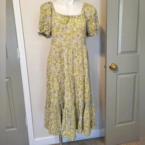 J.Crew Ditsy Floral Yellow Puff-sleeve Cottage Core Tiered Midi Dress(XS)