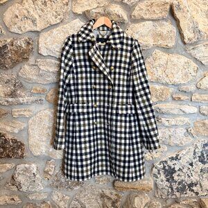 J.Crew Double Breasted Classic Wool Coat Jacket Black Ivory Oxford Plaid sz 12