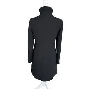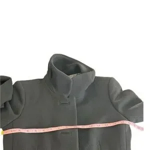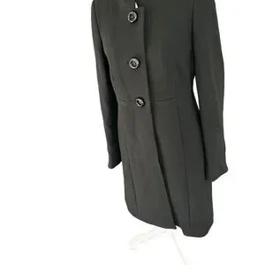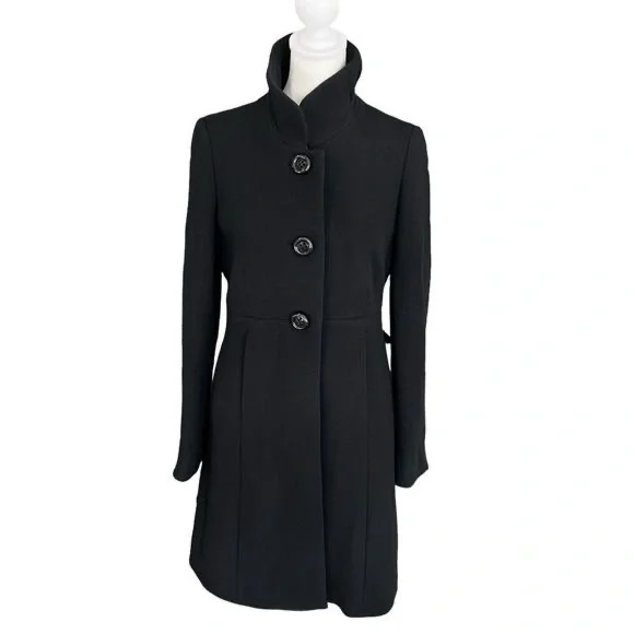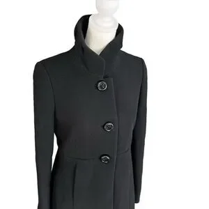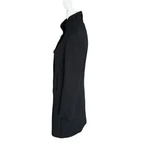 J Crew Black Double Cloth Wool Lady Day Pea Coat Size 2**there is a tear in one armpit*** Structured 3 button with one hidden button clasp Pockets High neck