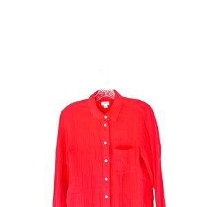 J.Crew Double Gauze Button Up Shirt Bright Cerise Orange Casual Basic Small