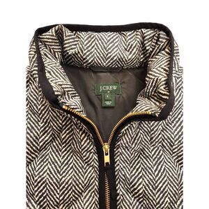 J.Crew Down Filled Vest herringbone black white pattern womens Small polyester. Hand pockets unlined quilted. Good pre-owned condition no stains no holes measurements provided in pictures are approximate please check measurements for proper fit