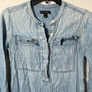 J.Crew Drapey Chambray Button Tunic Shirt Dress Size XXS 100% lyocell