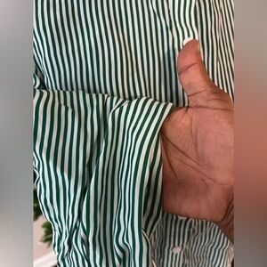 J.Crew Drapey Cupro Blend Ruffle Trim Striped Shirt White/Green size M