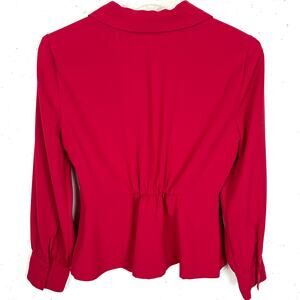 J.Crew Womens Faux Wrap Crepe Blouse V-Neck Button Cuffs Peplum Red