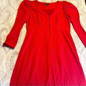 J.Crew Drapey Puff Sleeve Ruffled Red White Polka Dot Maxi Dress