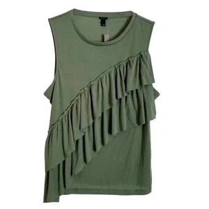 J.Crew Drapey Ruffle Tank Top Green Sleeveless Shirt Size Small