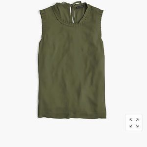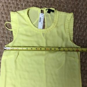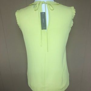 Classic J.Crew Ruffle Neck Sleeveless Blouse in Bright Yellow. Perfect for layering under a blazer or denim jacket! New with Tags, but slight makeup marks around collar from trying on- can definitely be cleaned! Bundle and save!! Check out my other items from J.Crew!