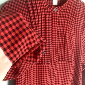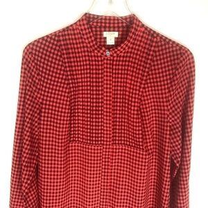 J.Crew Drapey Tuxedo Red Black Pleated Button Down Blouse Top. Size Medium. Great pre-owned condition, no visible flaws!