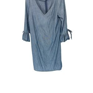 J.Crew Dress Blue Basic Lightweight V-Neck Chambray Ruffle Tie Sleeve