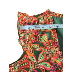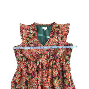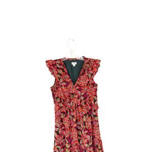 J.Crew Dress Prink Green Dainty V-Neck Ruffle Broomstick Short Sleeve Size 0
